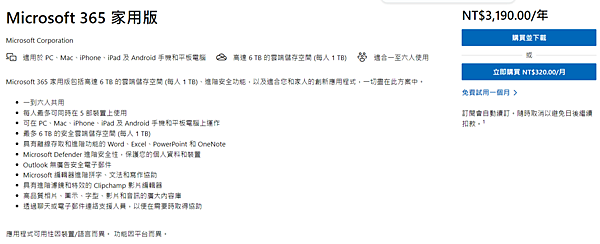而Office 365也有提供多人家用版的方案,