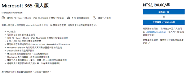 一個月NT$219元/每年NT$2190元(買一年送兩個月的概念...),